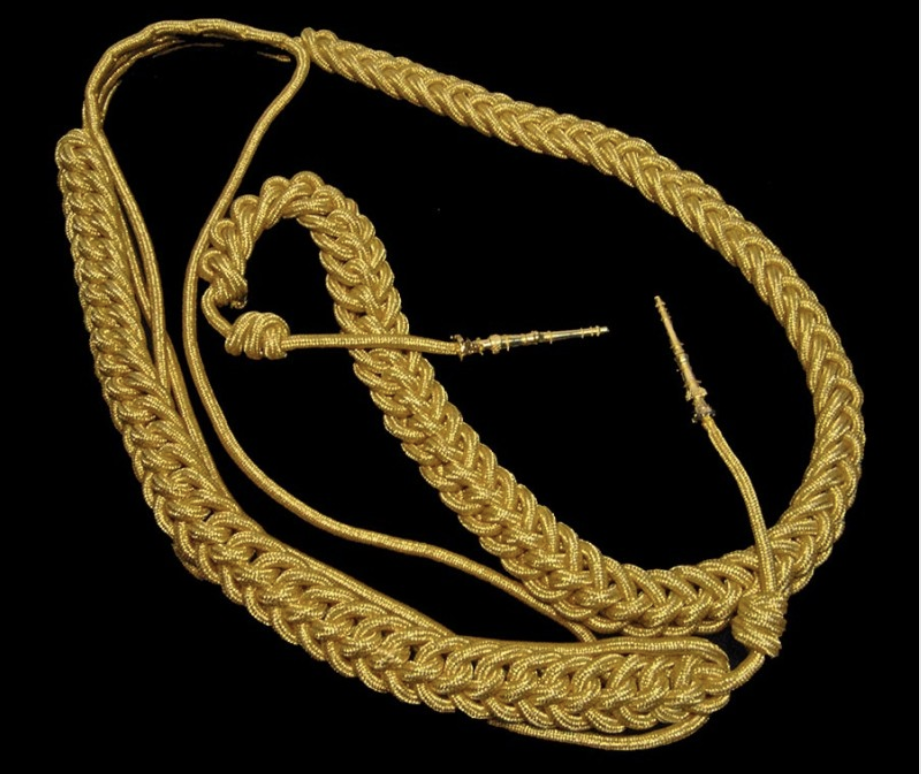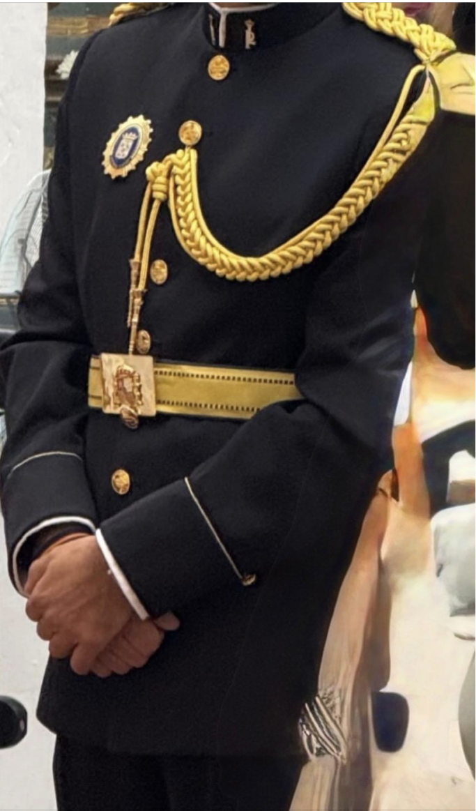 Traje de alta confección y materiales primera calidad totalmente personalizado, fabricado en satén con forro interior de tritón, y sutar dorado de alambrillo por las juntas del puño y parte superior del mismo. Camisa figurada tipo Mao, insignias doradas y botones metalicos dorados (no plástico). Hombreras de hilo de oro de alambrillo (no hilo ni seda amarillo). Cordón gastador en hilo de oro de alambrillo con cabetes metalicos dorados y tallados. Este traje esta considerado como uno de los mejores trajes fabricados hasta ahora.